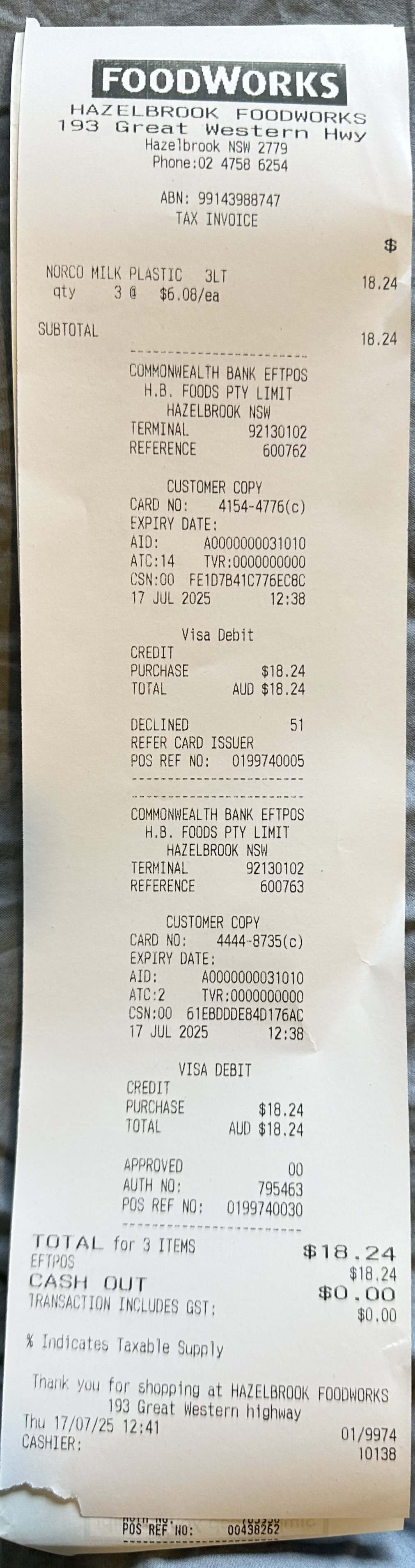 2025-07-17 Milk Foodworks Food $18.24 Shared Household πŸ“Ž ✏️